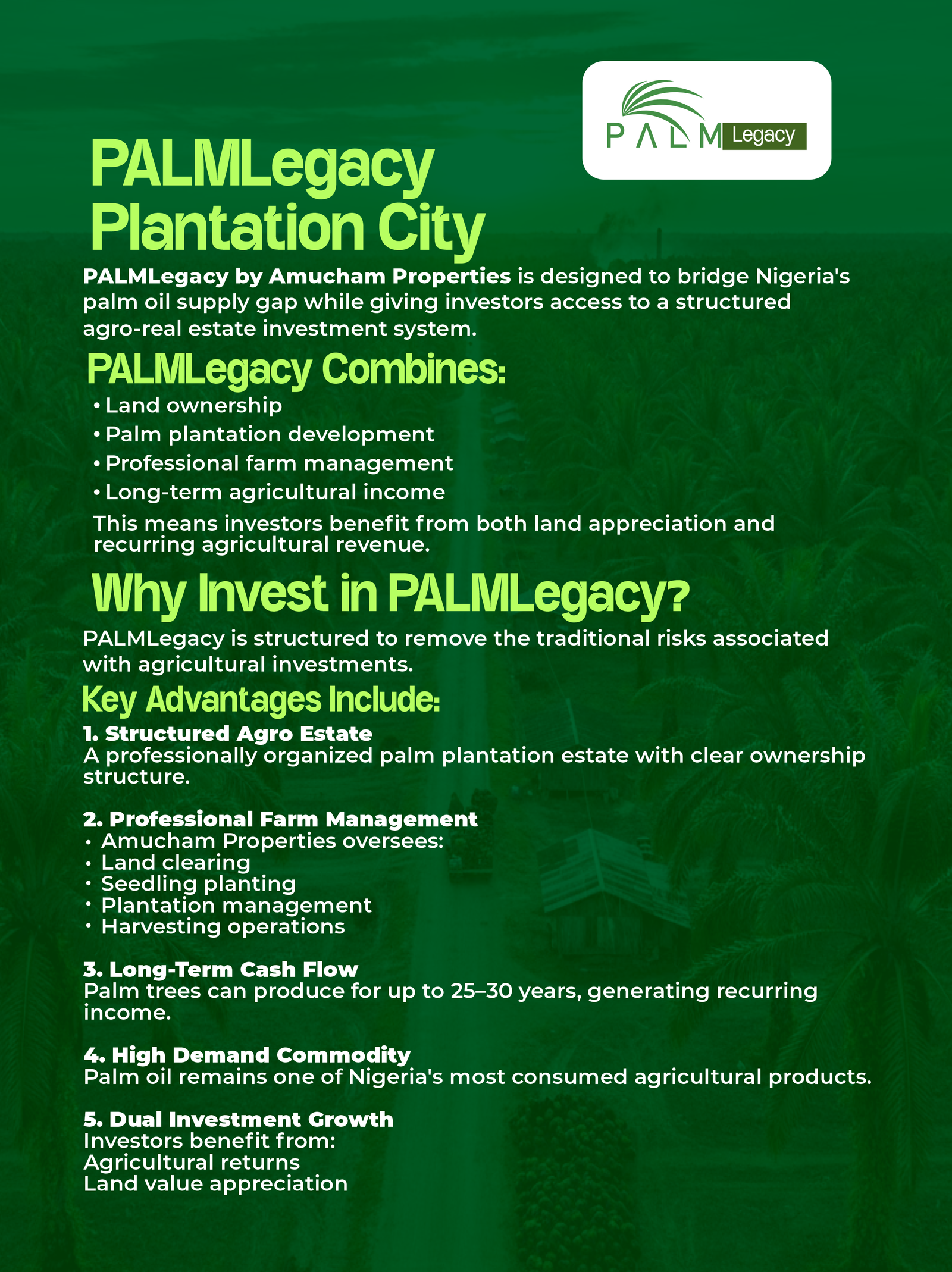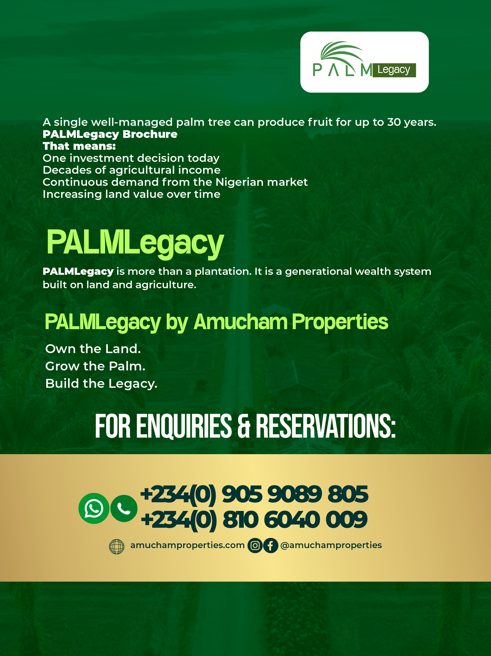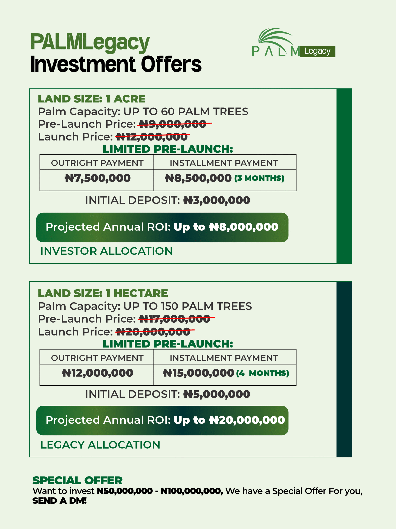 Own a professionally managed palm plantation in Nigeria for 30 years for as low as ₦7.5M.